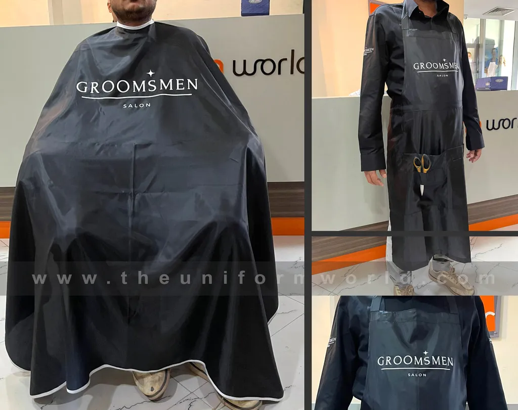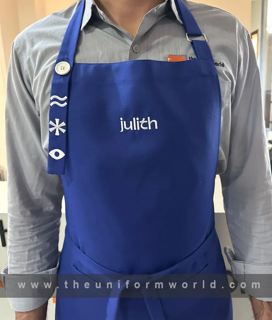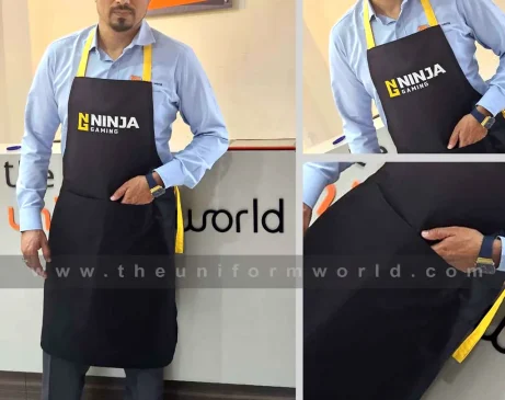 Navigate our recent Custom Aprons Uniform with logo branding done for our key customers in Dubai, Abu Dhabi, Sharjah, Ajman, Umm Al Qwain, Ras Al Khaimah, Fujairah UAE and Export Markets. We can customize any types of Companies Uniforms or Workwear with our stitching, tailoring, embroidery and printing production that makes our capability in high level of satisfaction for our customer.