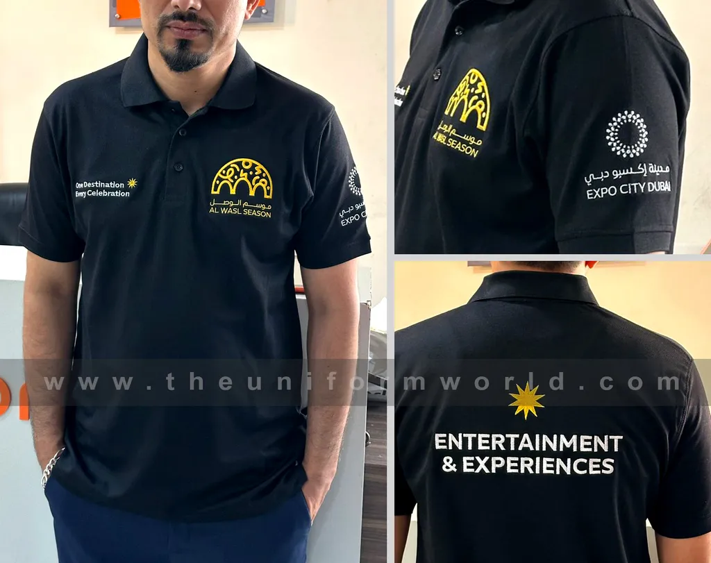 Navigate our recent Custom Polo Shirt T Shirt Uniform with logo branding done for our key customers in Dubai, Abu Dhabi, Sharjah, Ajman, Umm Al Qwain, Ras Al Khaimah, Fujairah UAE and Export Markets. We can customize any types of Companies Uniforms or Workwear with our stitching, tailoring, embroidery and printing production that makes our capability in high level of satisfaction for our customer.