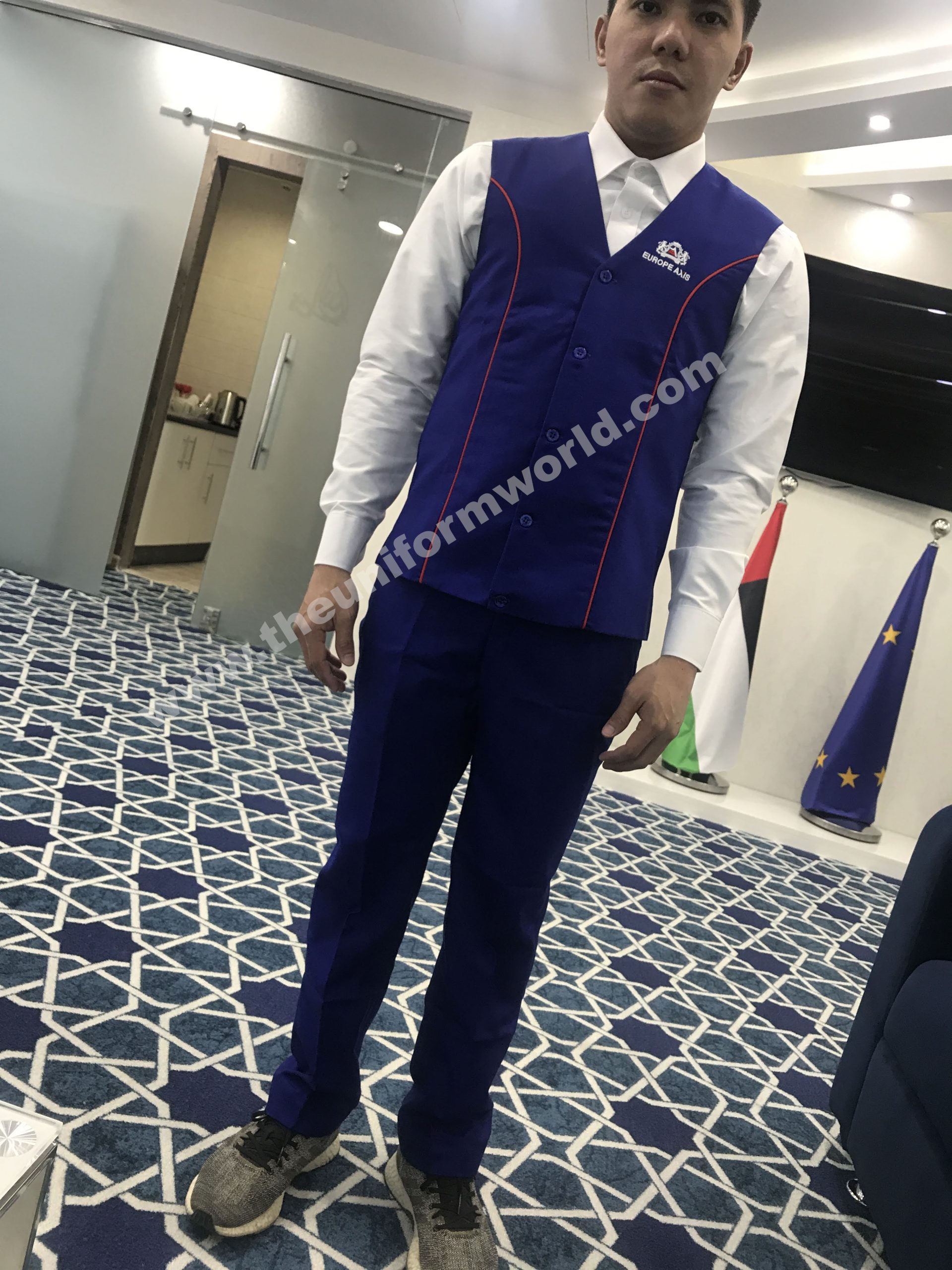 Navigate our recent Custom Waist Coat Uniform with logo branding done for our key customers in Dubai, Abu Dhabi, Sharjah, Ajman, Umm Al Qwain, Ras Al Khaimah, Fujairah UAE and Export Markets. We can customize any types of Companies Uniforms or Workwear with our stitching, tailoring, embroidery and printing production that makes our capability in high level of satisfaction for our customer.
