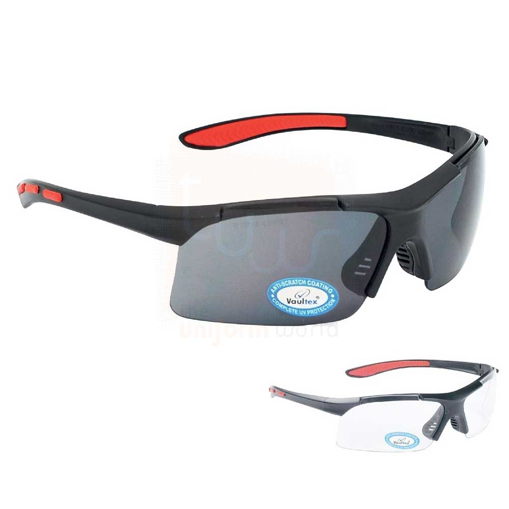 Dark Clear Half Frame Safety Glasses with Red Gripping Lining