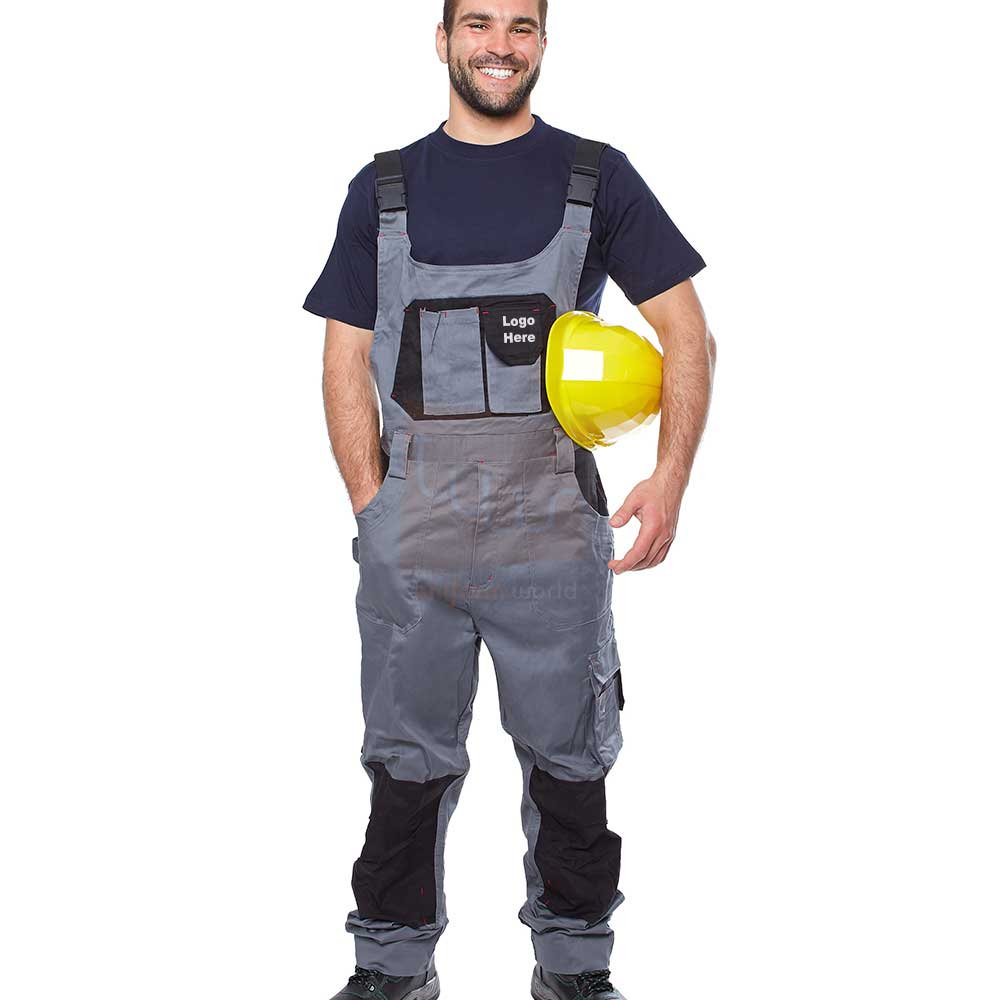 Grey Bib Coverall with Contrast and Multiple Pockets