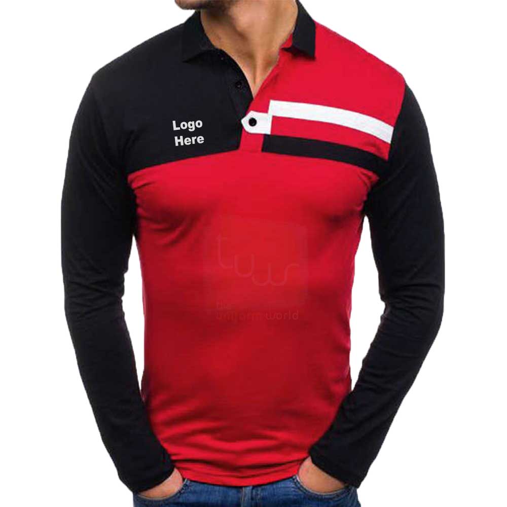 Red 3-Tone Cotton Polo Long Sleeve Sleeve