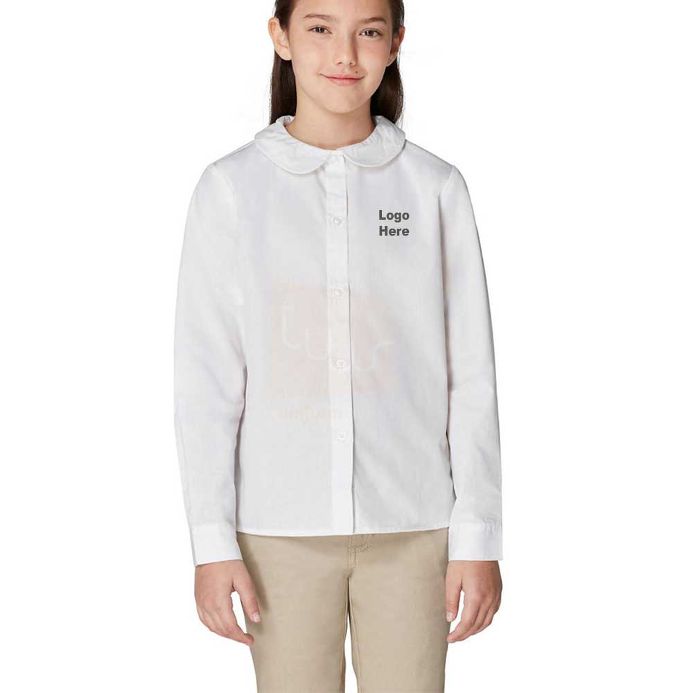 White Button-Down Peter Pan Blouse Long Sleeve
